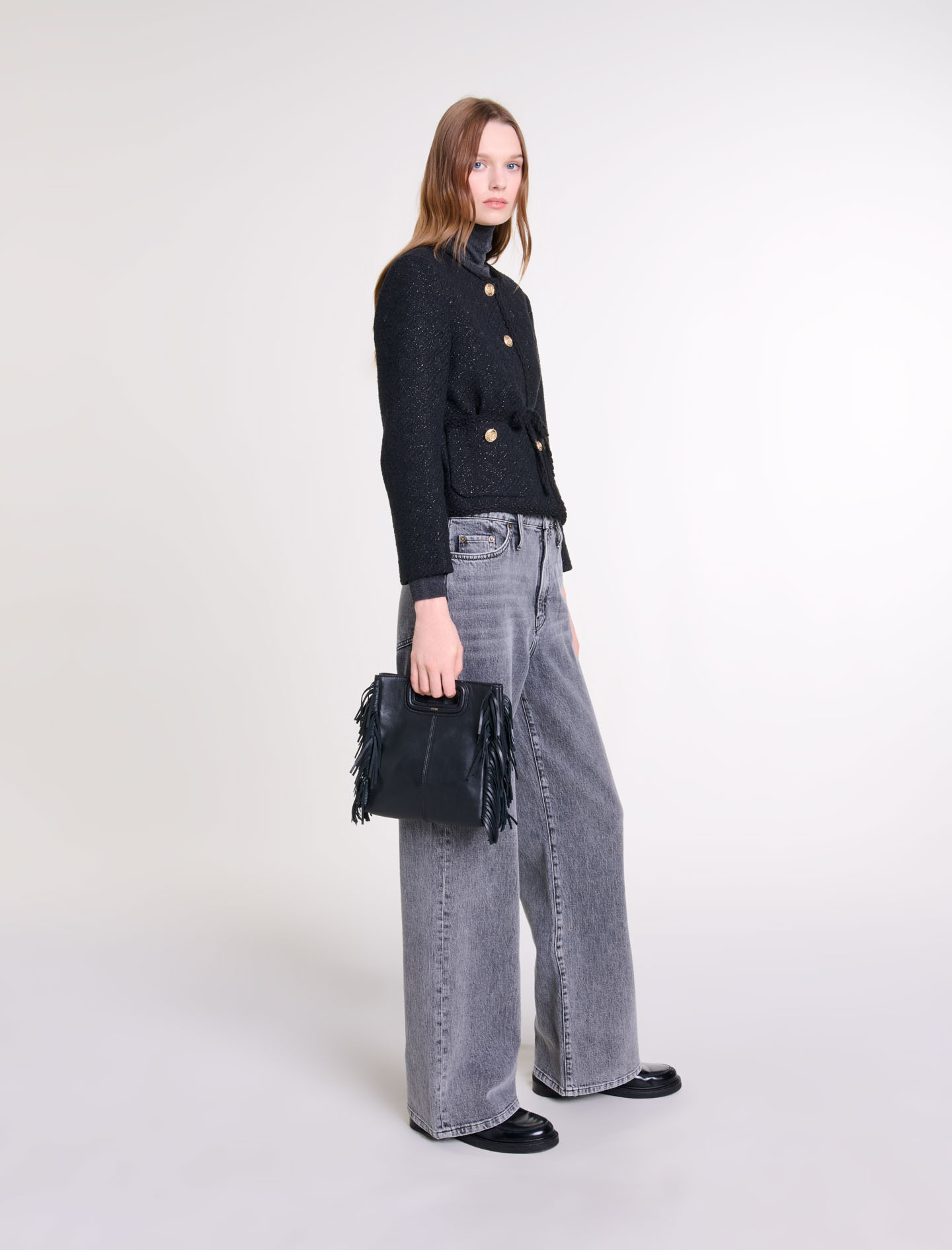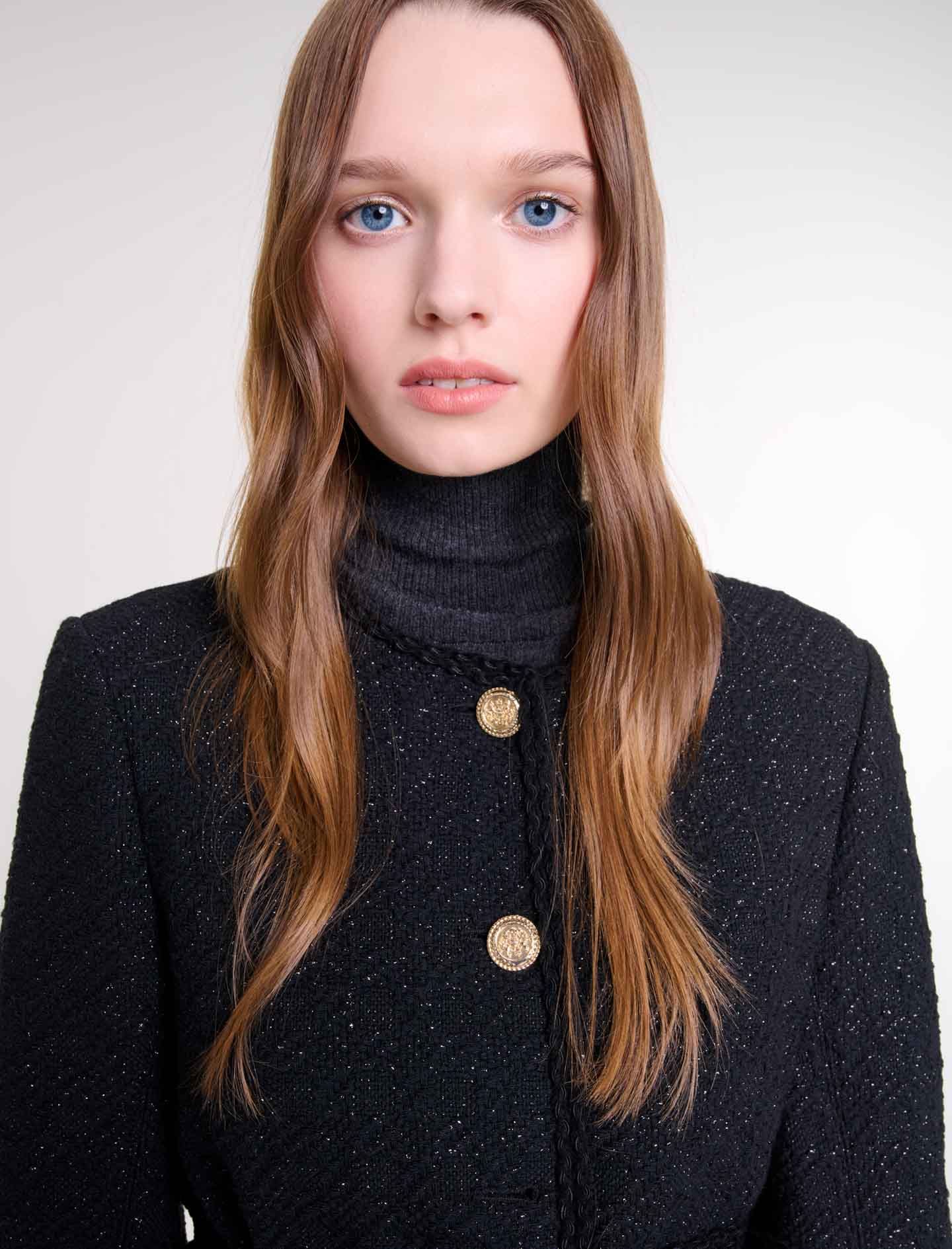 Maje cotton This season, Maje revisits the essential, fully lined tweed jacket in a shiny version which reveals a fitted, narrow cut at the shoulders.