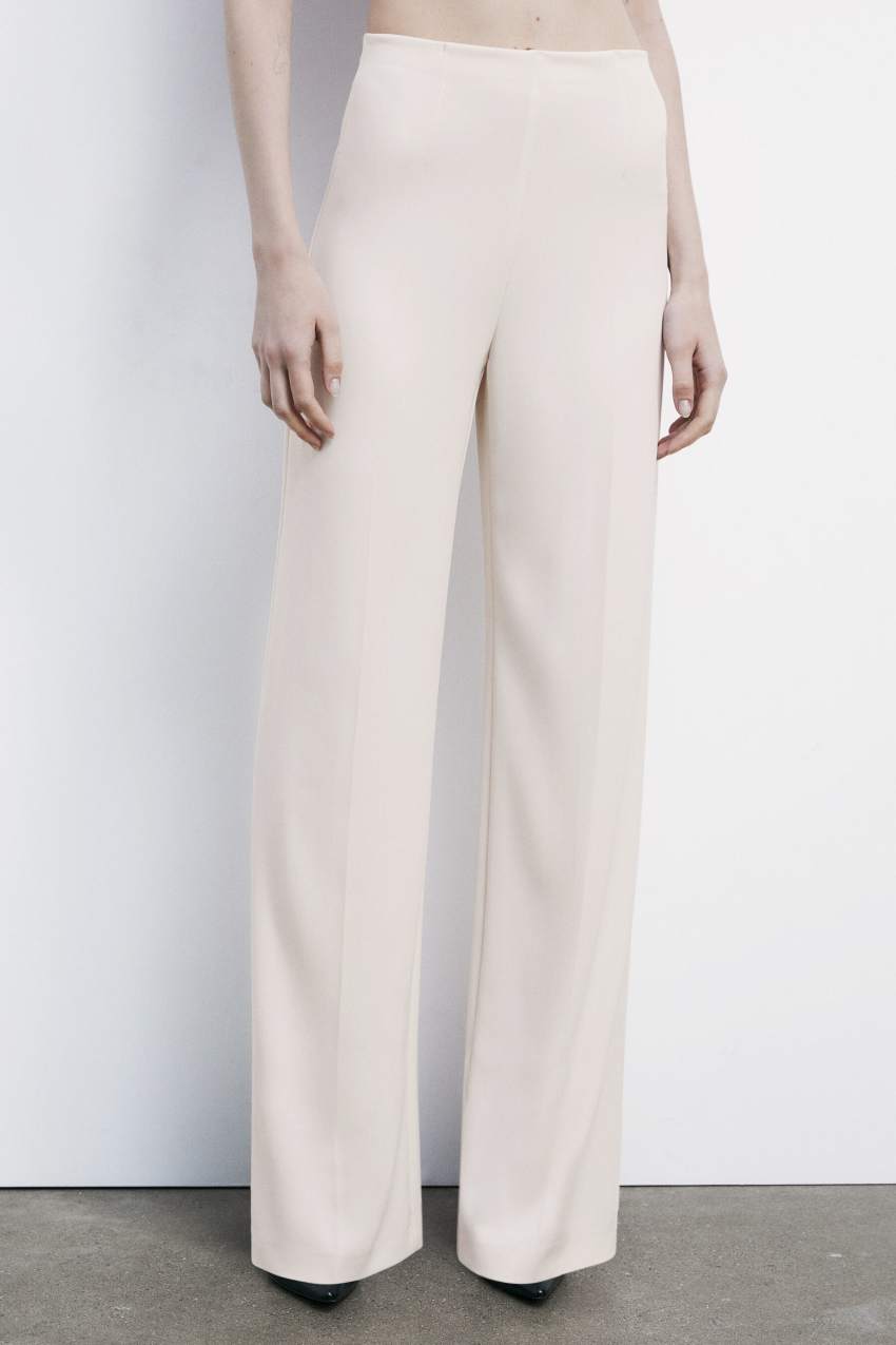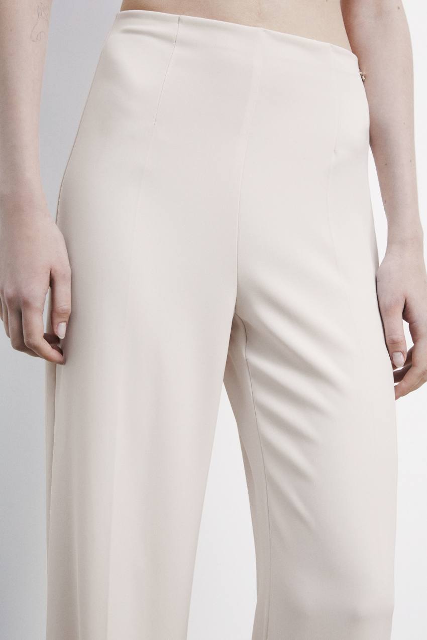 Dal taglio sartoriale con vita alta e gamba ampia.