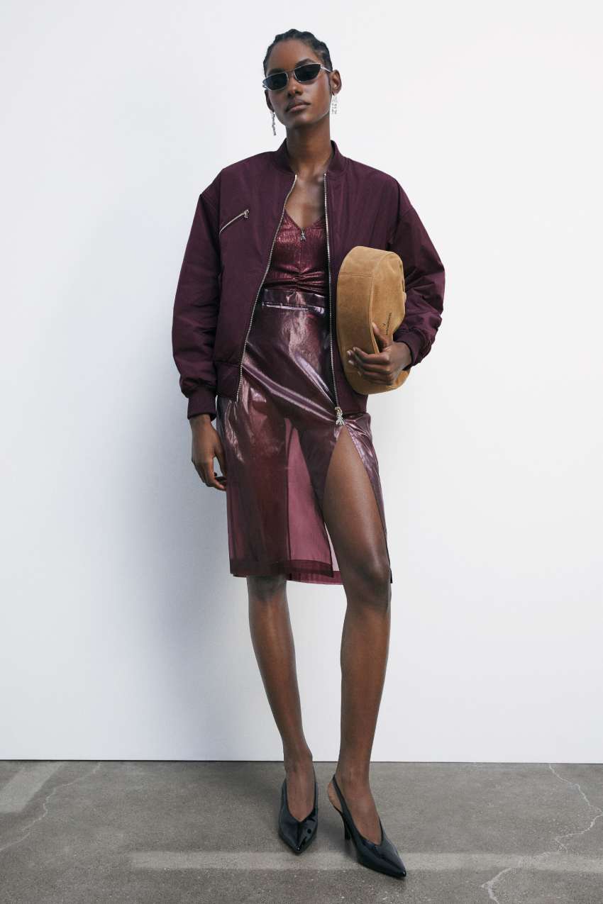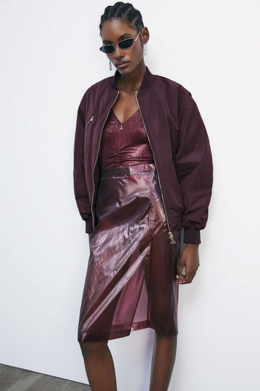 indossala con un bra gioiello e un bomber oversize per un look statement e completa con gli accessori Diamond Cut e le pumps glossy.