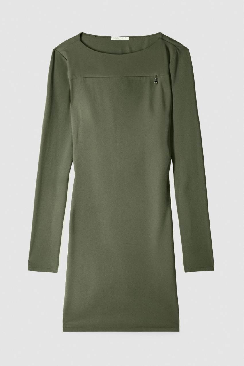 Abito mini bodycon realizzato in jersey tecnico elasticizzato per una vestibilità avvolgente.