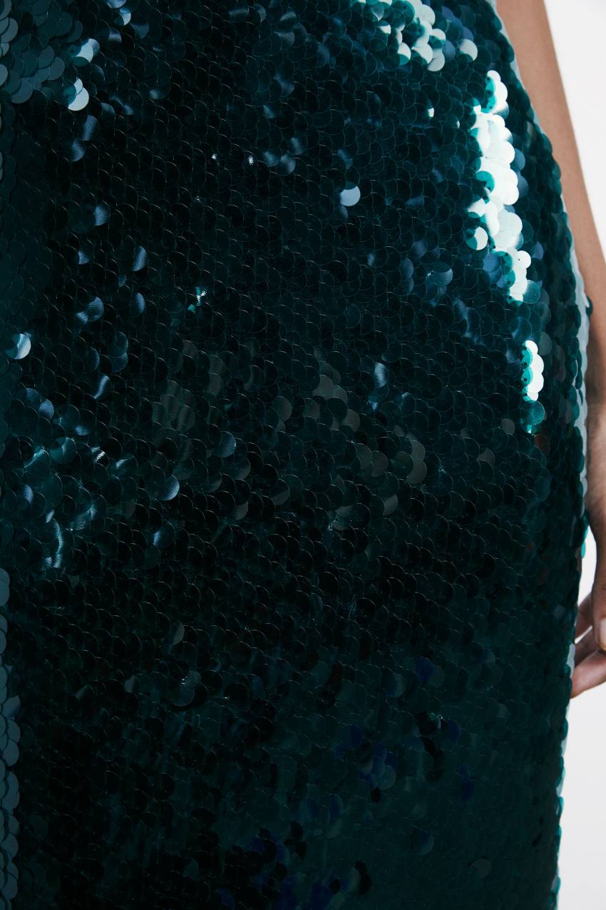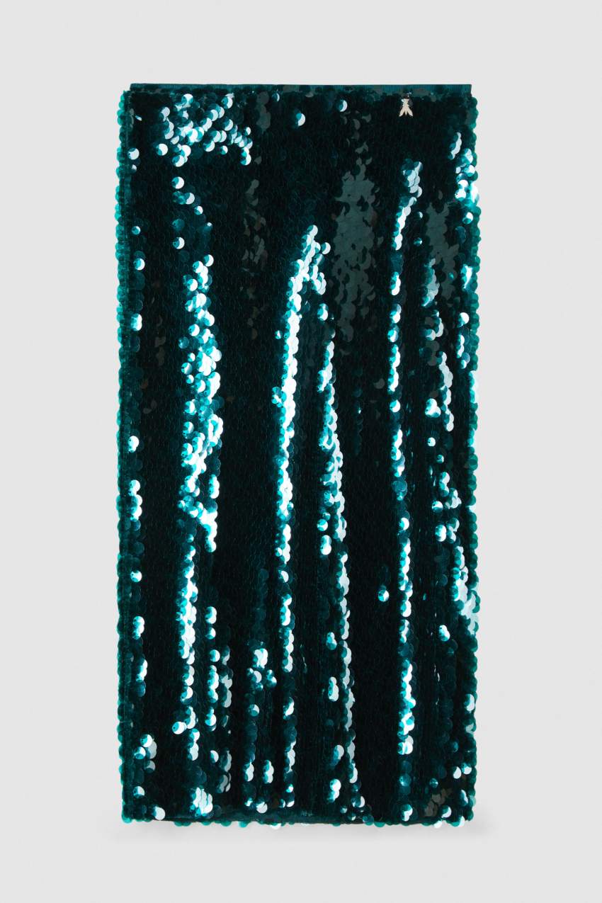Gonna midi in tulle interamente ricamata con paillettes iridescenti: