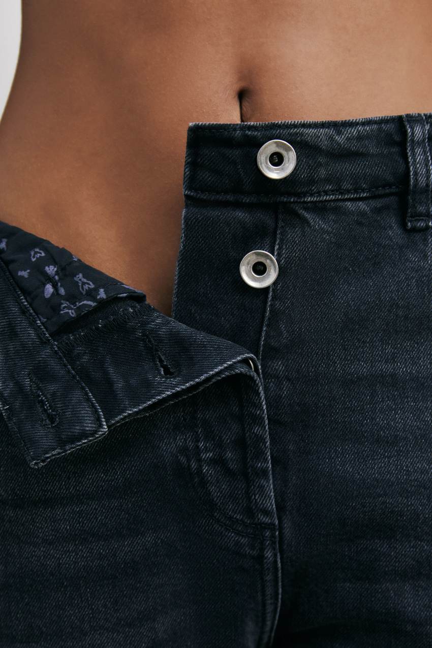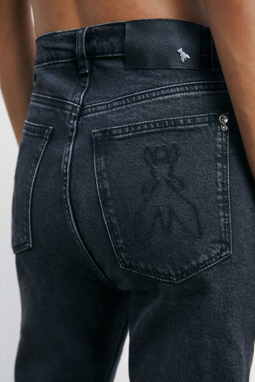 Jeans con taglio che sfiora la gamba e dà un orlo alla caviglia.