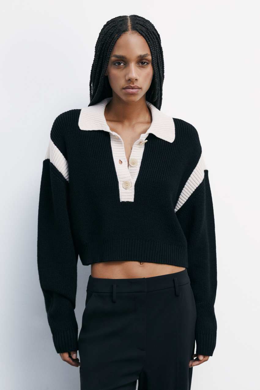 La capsule Racing presenta la maglia in misto lana modello serafino.