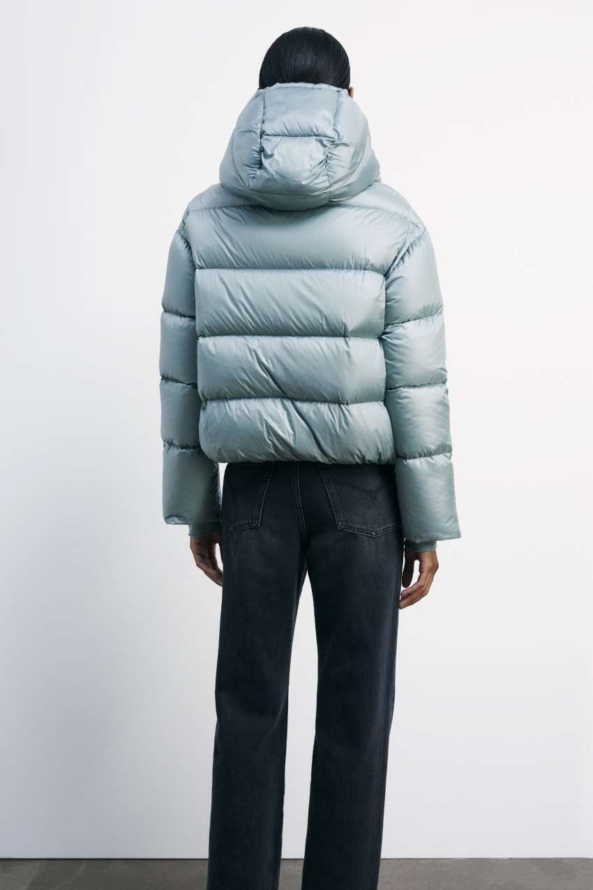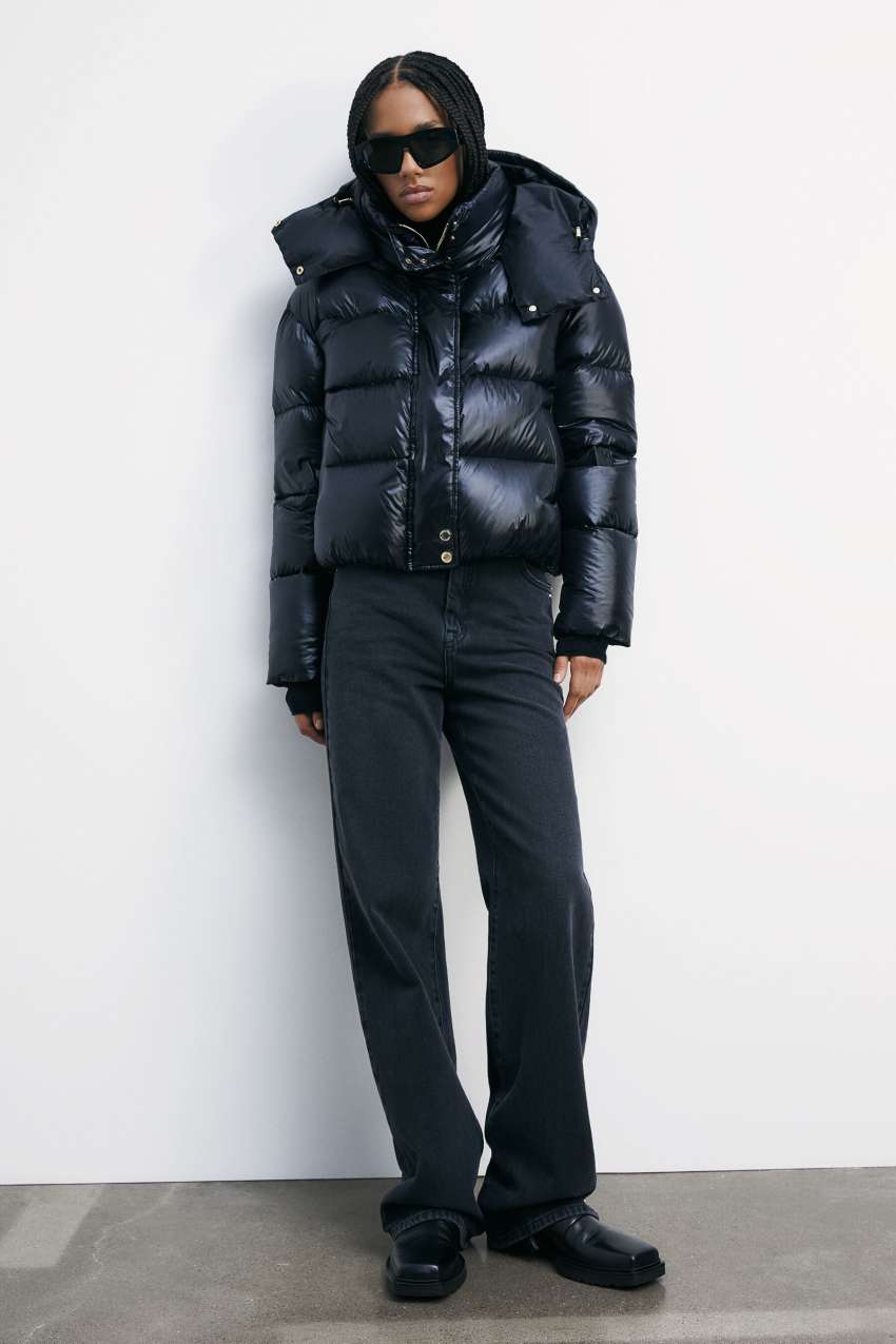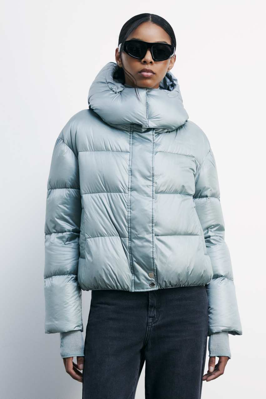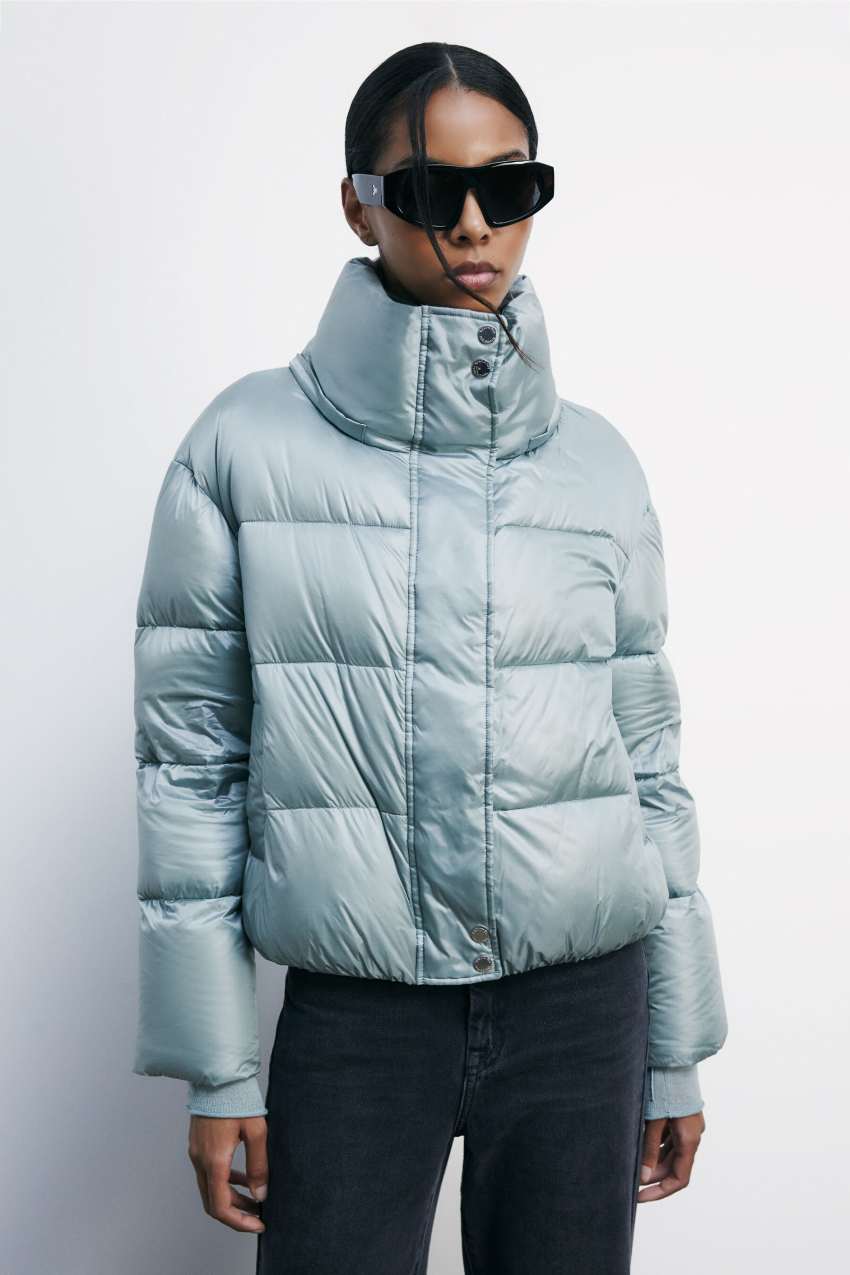 Piumino imbottito realizzato in nylon ultralight con finish lucido.