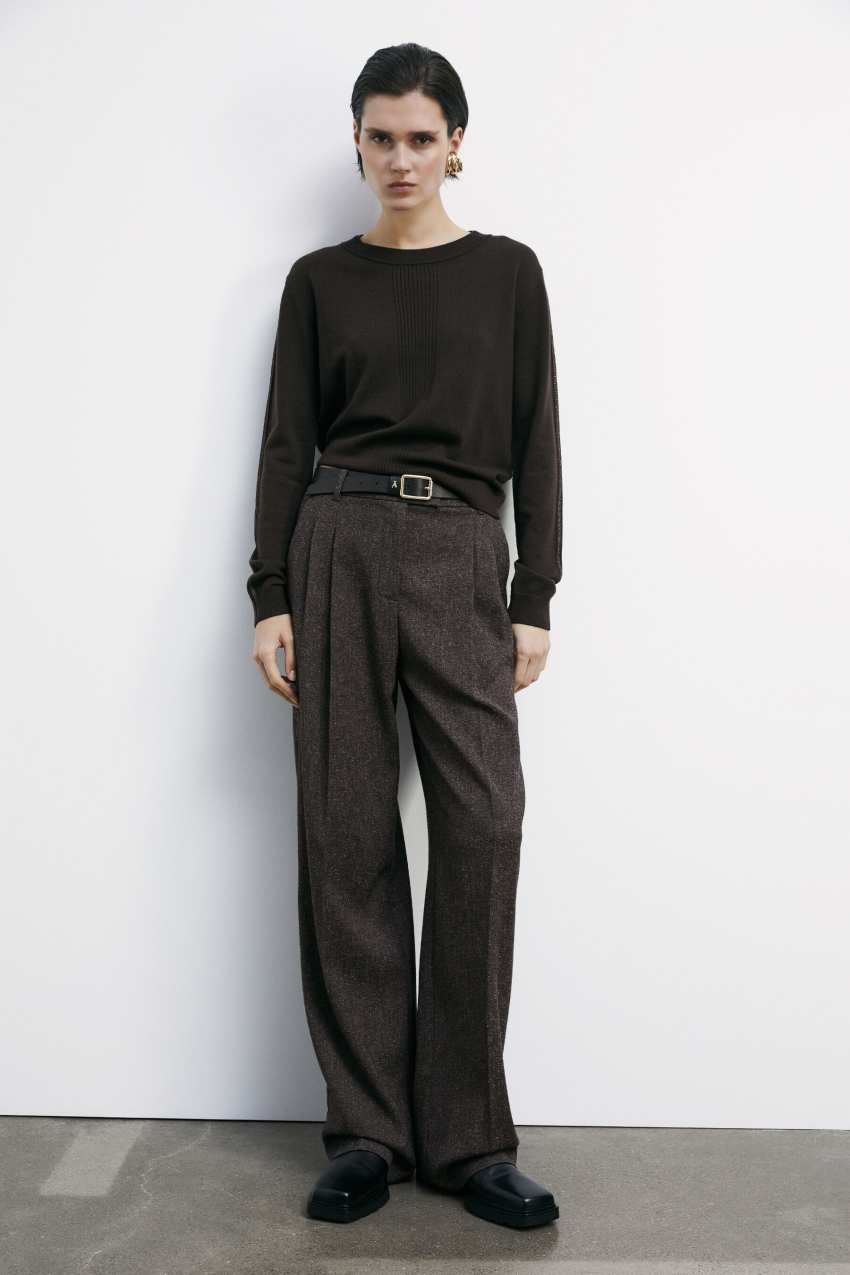 Si distingue per il dettaglio in lurex che percorre tutto il profilo delle maniche.