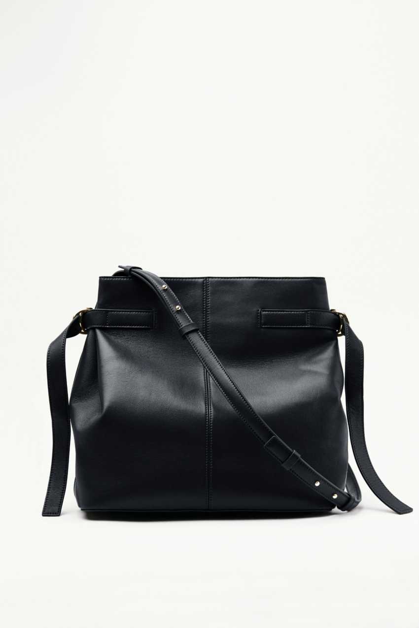 La borsa a secchiello unisce look minimal e funzionalità glam.