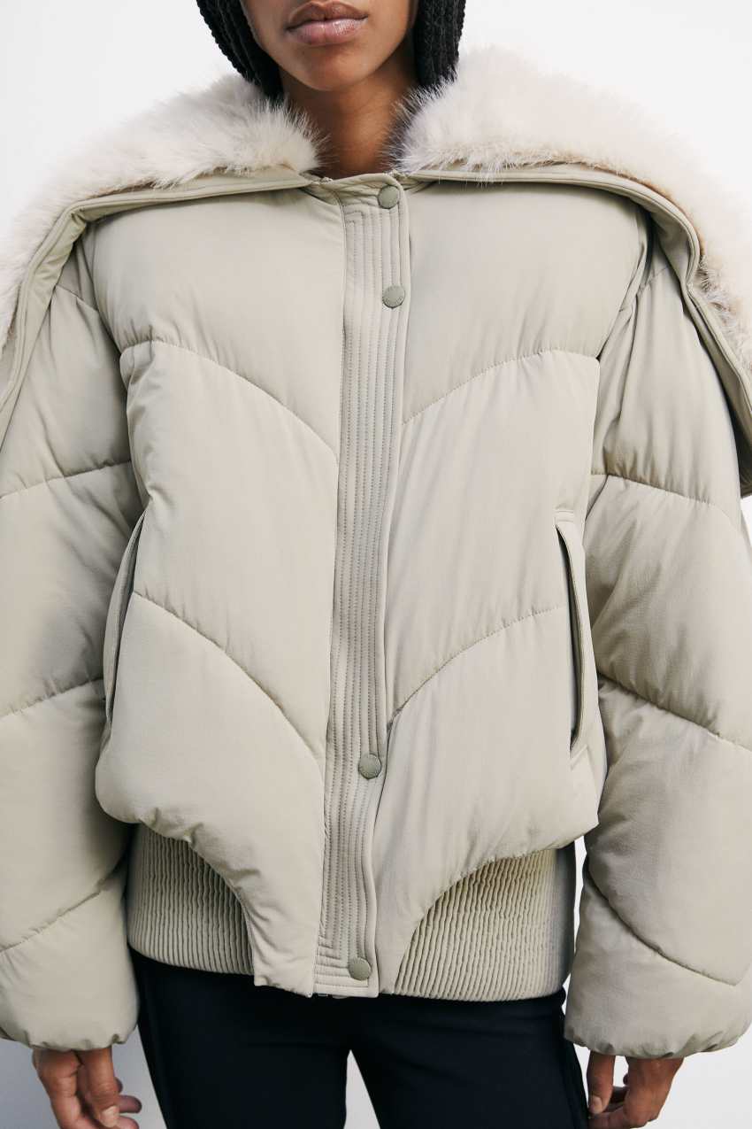 Piumino imbottito con taglio bomber oversize.