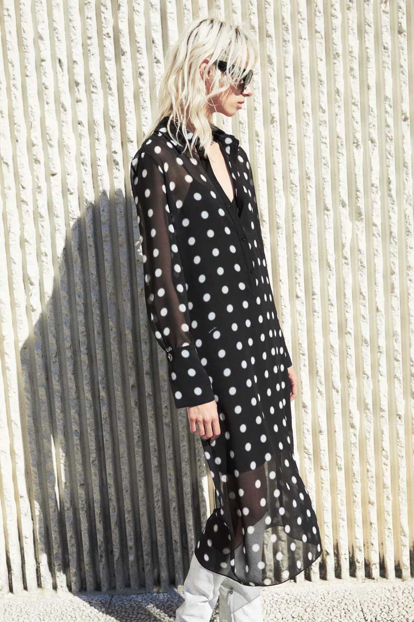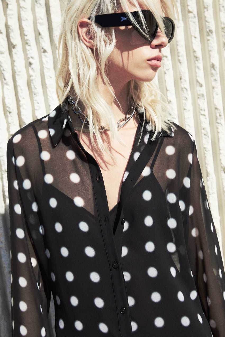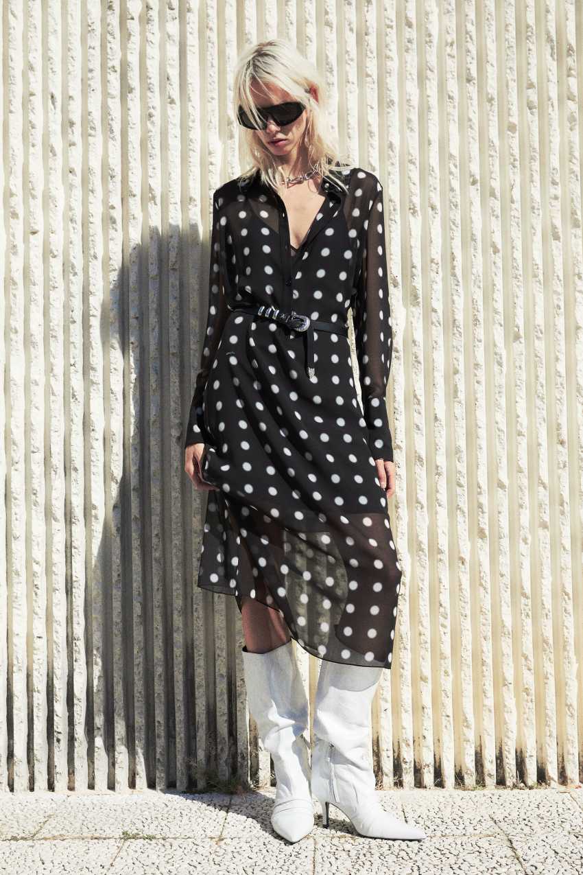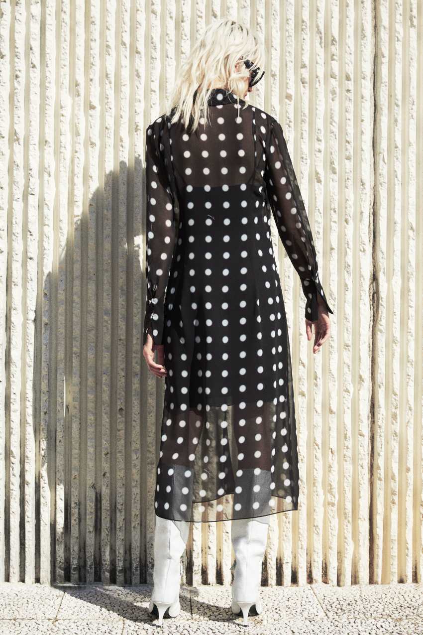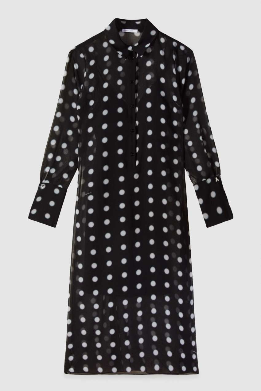 L'abito midi fluido a pois dal design chemisier.