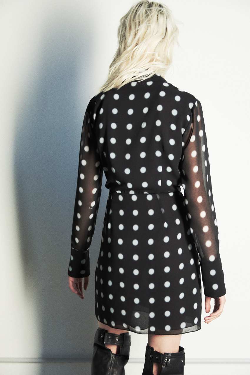 Il mini abito fluido a pois dal design chemisier.