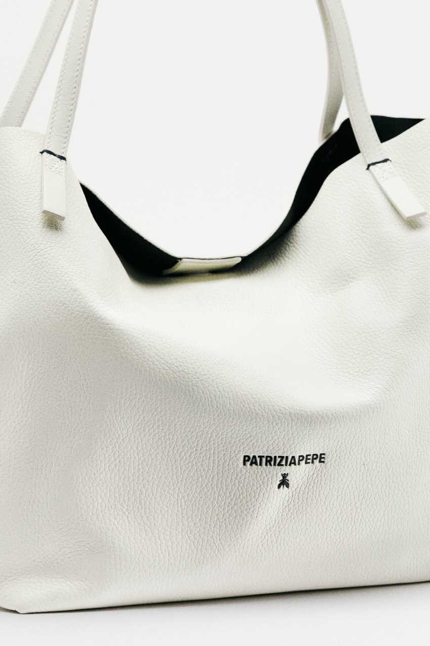 Das „PATRIZIA PEPE FLY“-Logo und die herausnehmbare Innentasche setzen stilvolle Akzente.
