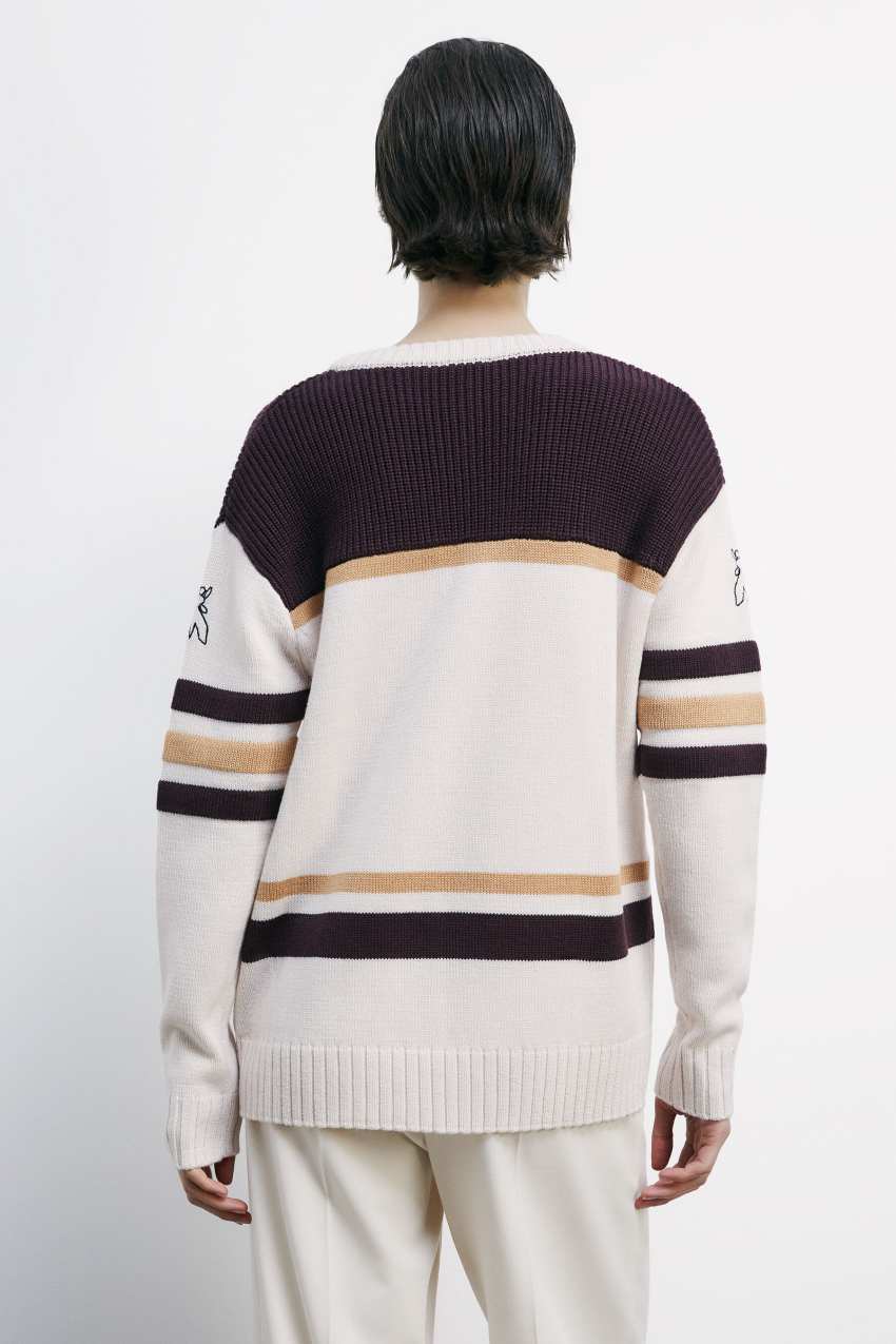 Die Racing-Capsule präsentiert den Sportswear-inspirierten Pullover aus Wollmix mit Logo und Colour-Block-Jacquard.