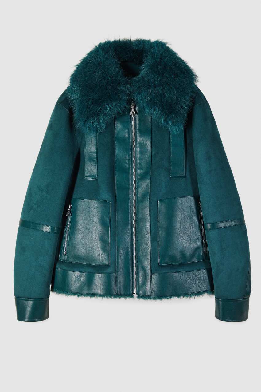 Eine Seite soft mit weichem Kragen und Coated-Finish-Details - gewendet wird sie zum Fluffy Style mit voluminöser Silhouette und großen Taschen.