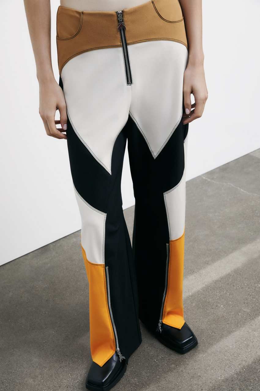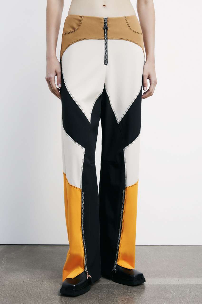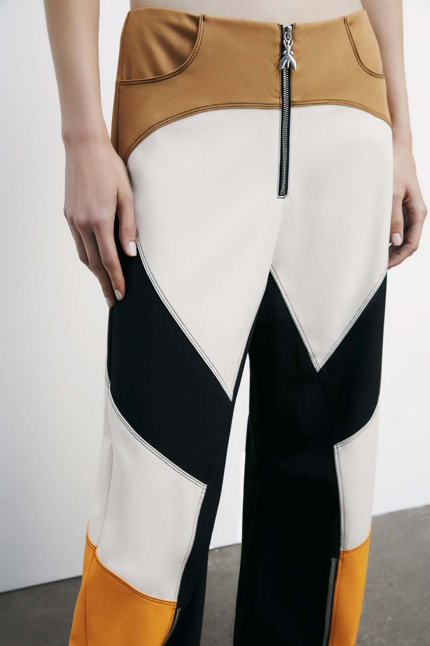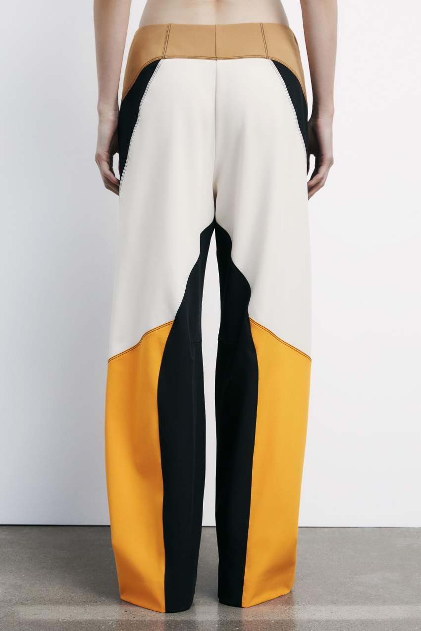 Der fließende Schnitt und das markante Color-Block-Muster inspirieren Looks im New-Casual-Stil.