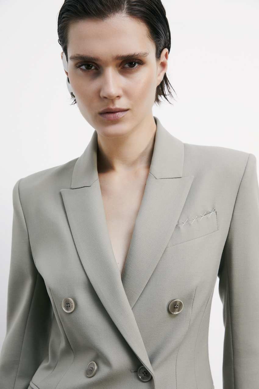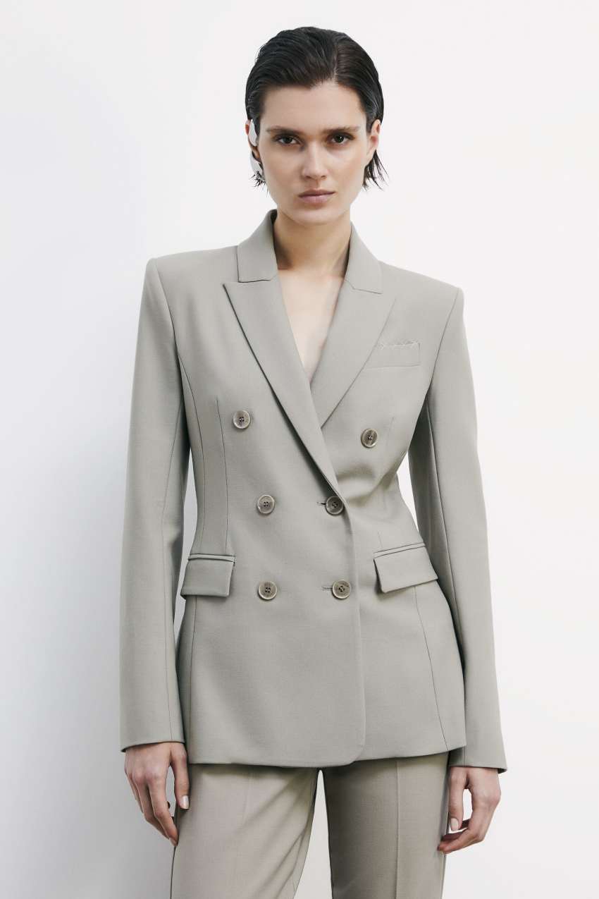 Patrizia Pepe Zweireihiger Blazer „ESSENTIAL“ Beige Größe 44