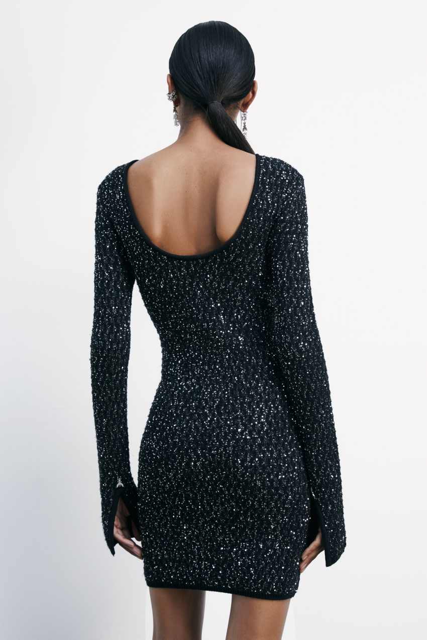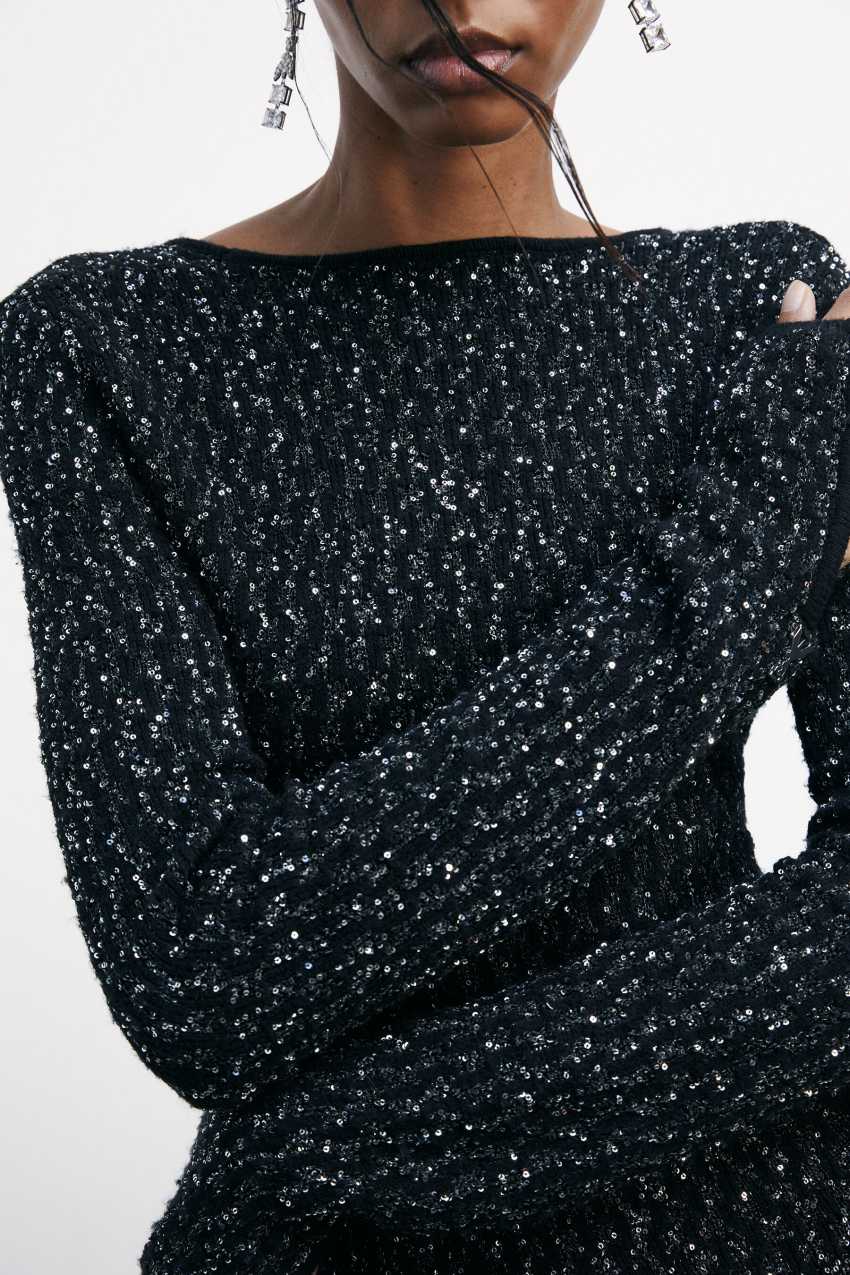 Patrizia Pepe Mini-Strickkleid mit Pailletten Schwarz Größe I