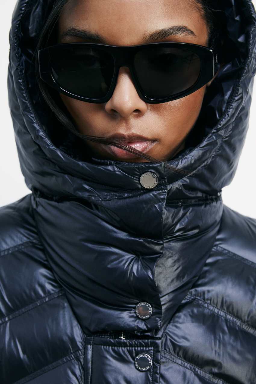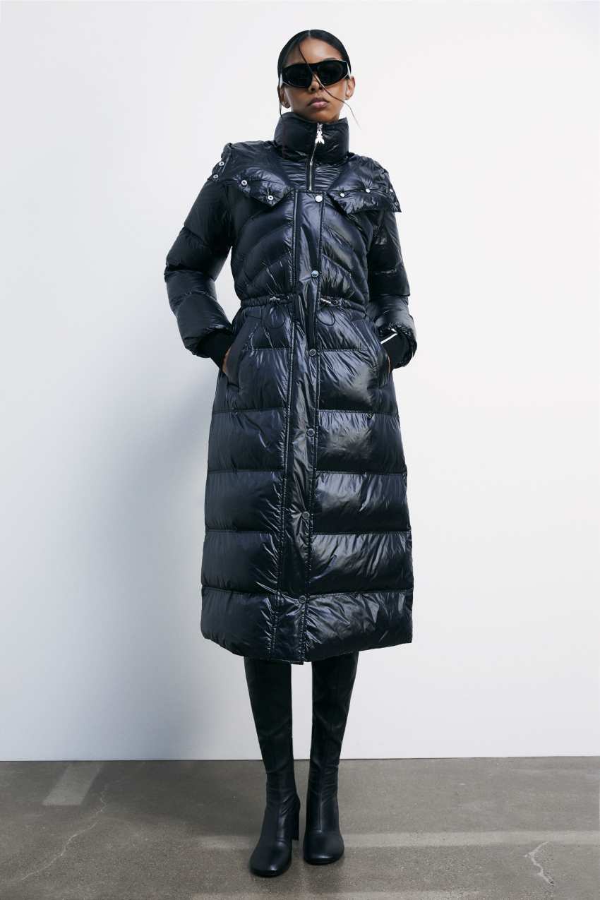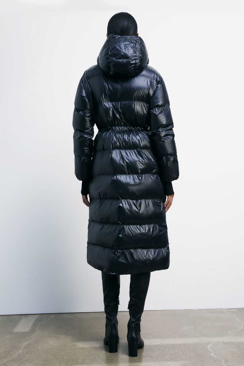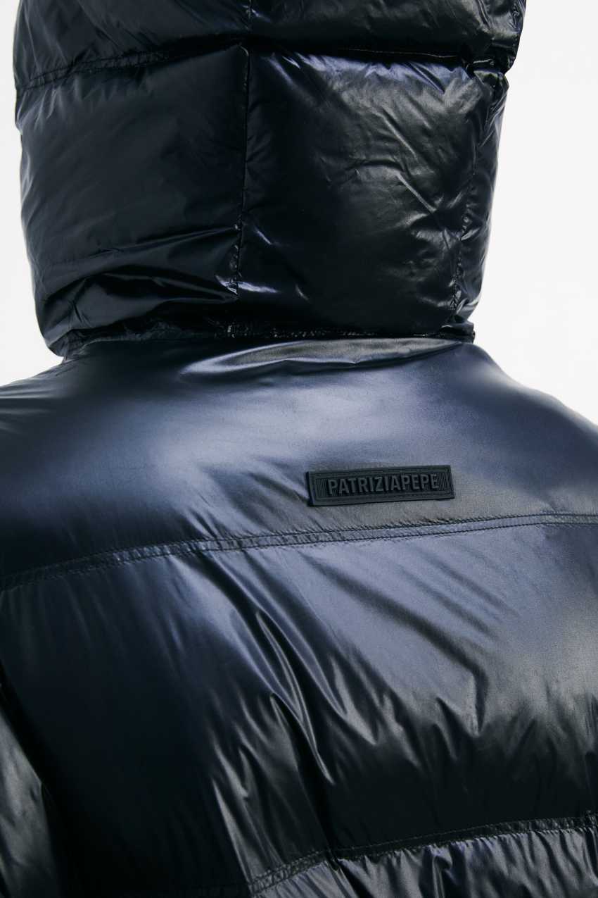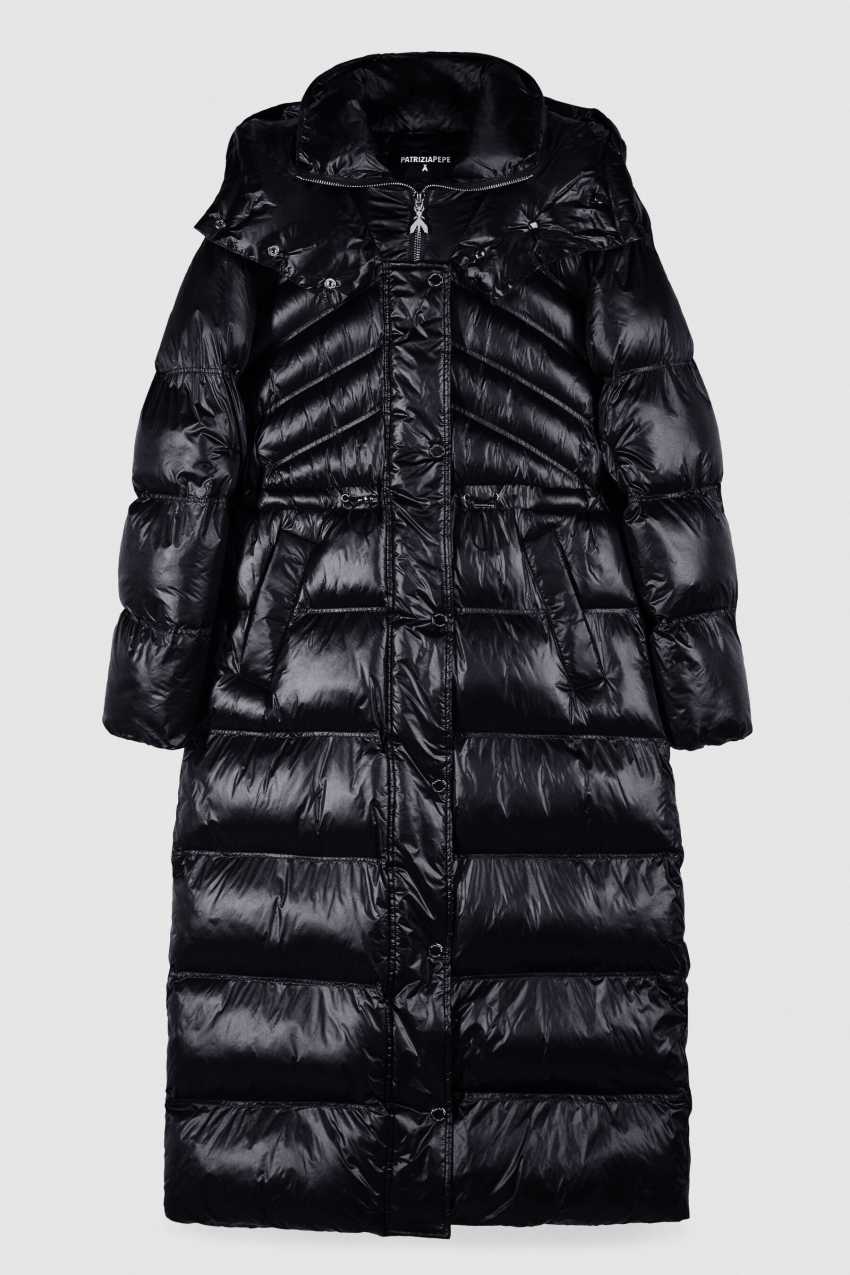 Langer Daunenmantel aus ultraleichtem Nylon in Glossy-Finish.