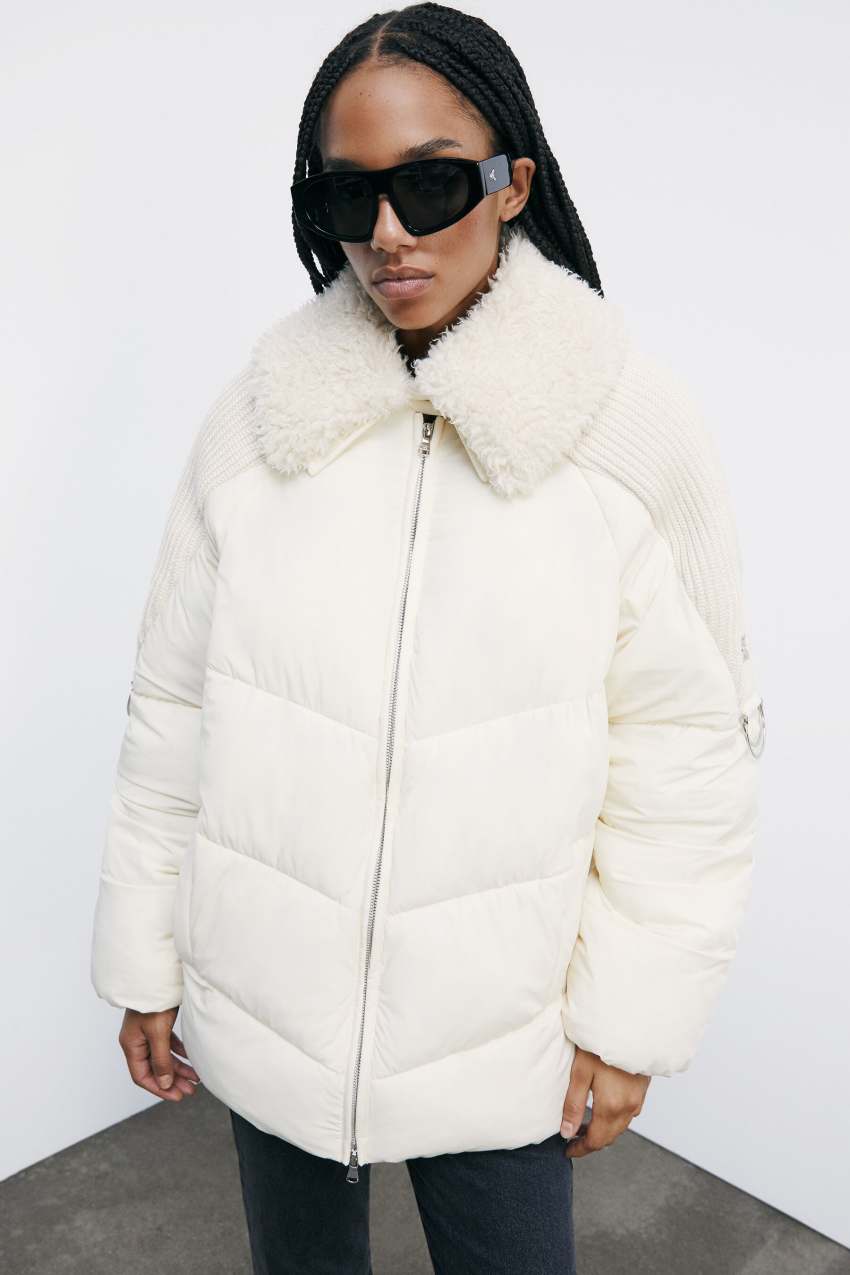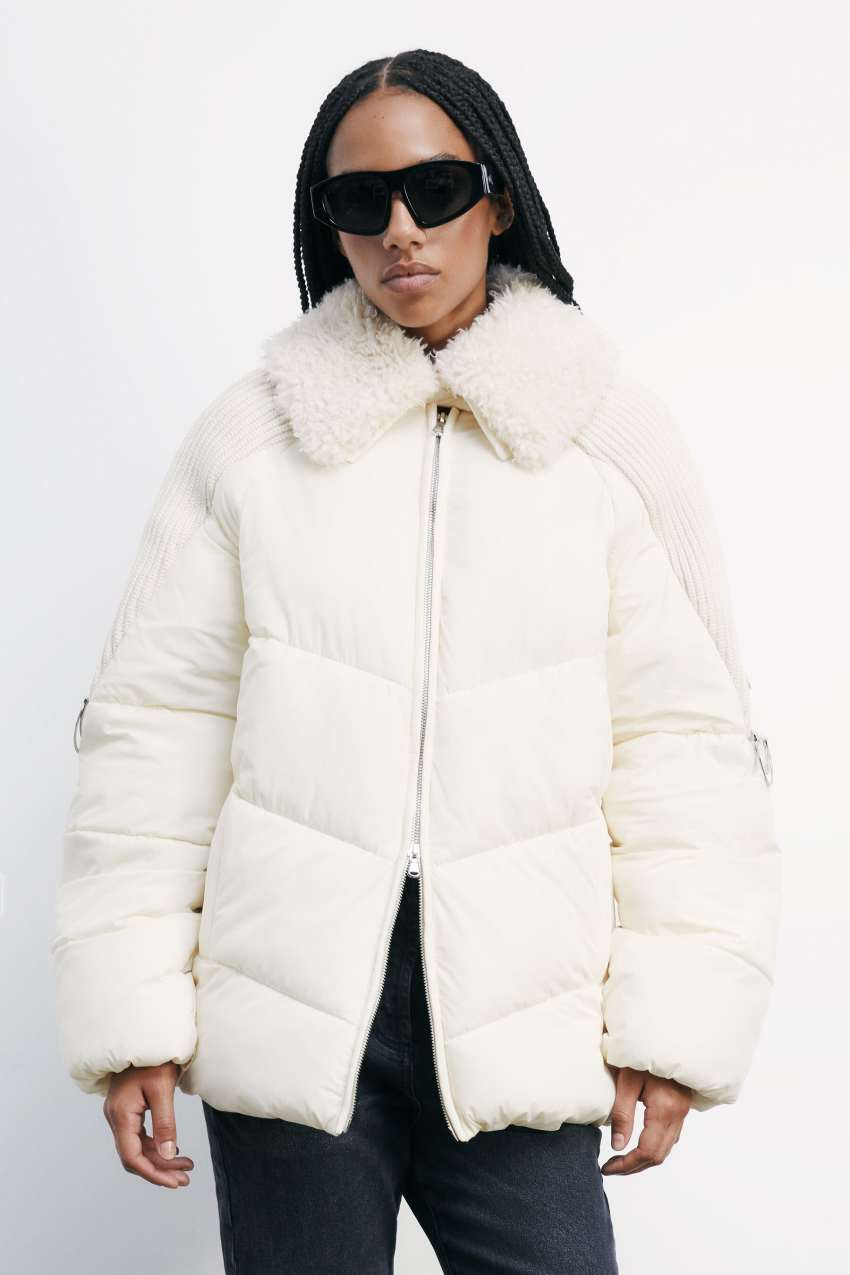 Patrizia Pepe Daunenjacke mit flauschigem Kragen Weiß Größe 46