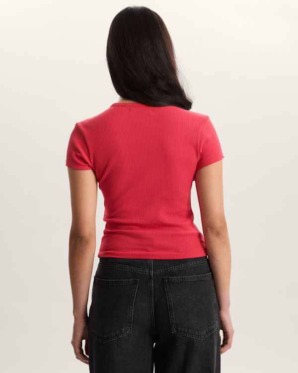 Made with a soft, comfortable feel and finished with a clean Vans logo on the front, this ribbed stretch tee is all about timeless style that works wherever the day takes you