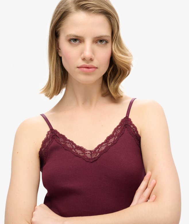 Superdry Athletic Essential Lace Trim Cami Top Paars