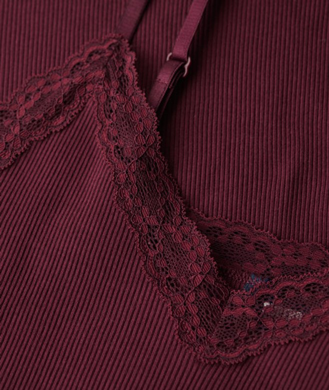 Slimfit - de nauw aansluitende pasvorm zorgt voor een getailleerd silhouet Geribd materiaal Verstelbare spaghettibandjes Kanten biezen V-hals Kort model Superdry-label UK 6-8, VS 2-4, EU 34-36 VK 10-12, VS 6-8, EU 38-40 VK 14-16, VS 10-12, EU 42-44