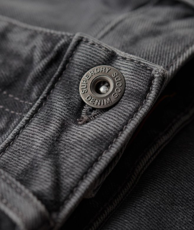 Button fastening with zip fly Belt hoops Classic five pocket design Branded hardware Vintage Superdry patch Distressed detailing Made with organic cotton grown using natural rather than chemical pesticides and fertilisers.