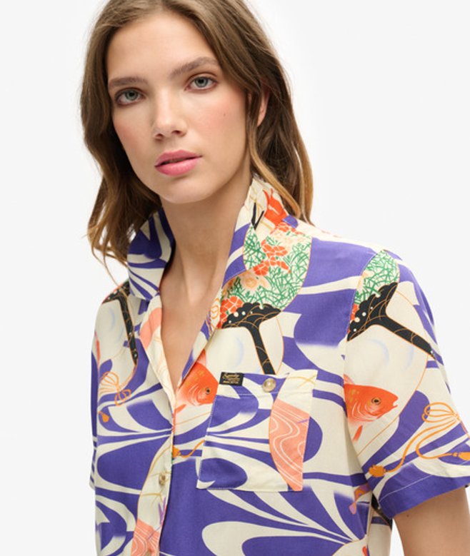 Superdry Women's Beach Resort Shirt Blue / Ryusui Blue | ricciano UNITED KINGDOM