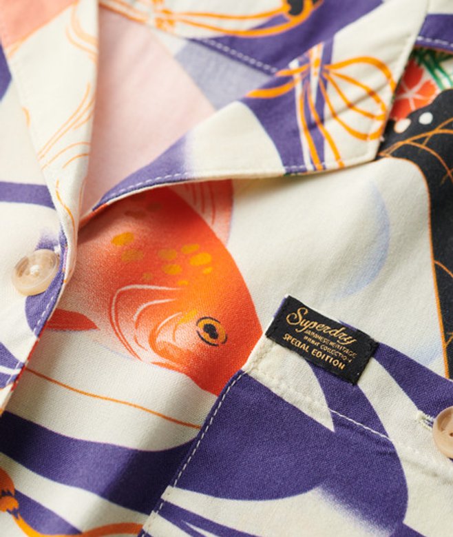 Button fastening Short sleeves All over print Chest pocket with button fastening Embroidered Superdry logo