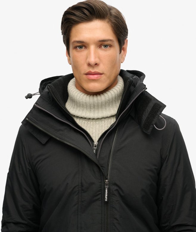 Superdry Men's Men's Slim Fit Pop Zip Hood Arctic SD Windcheater Jacket, Black