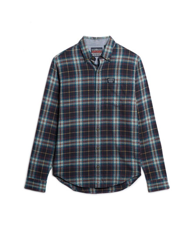Go for your normal size Brushed cotton twill fabric Button-down collar Button fastening Long sleeves Button cuffs Chest pocket Twin back pleats Hanging loop Signature Superdry patch on pocket Branded buttons Logo patch behind lower placket A stunning deep blue check with highlights of yellow and red.