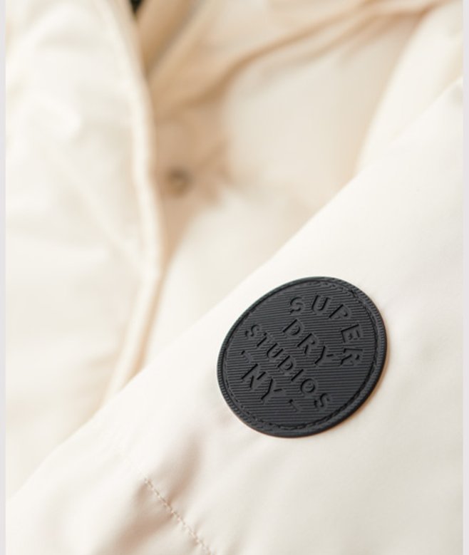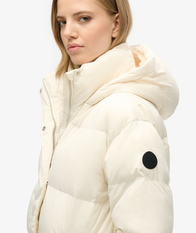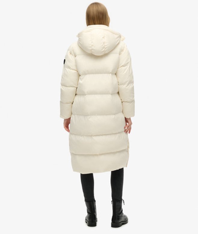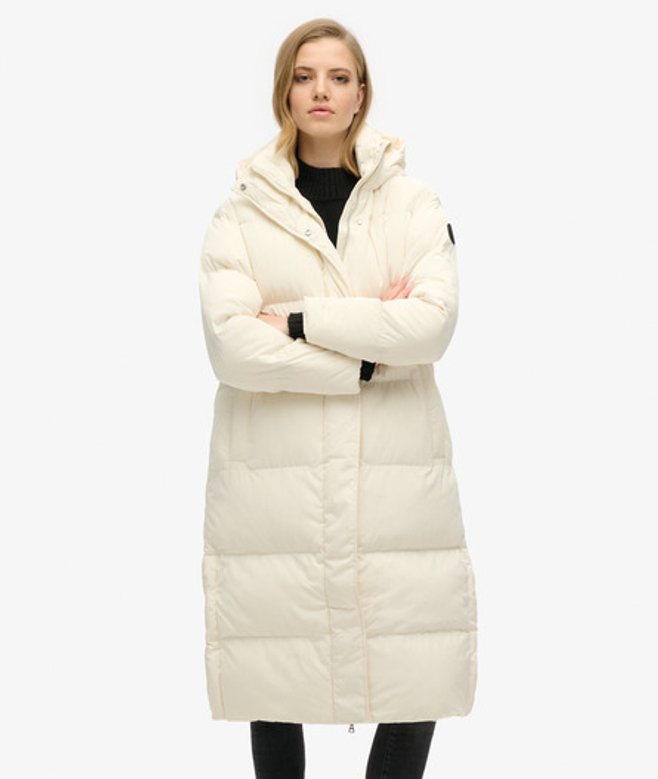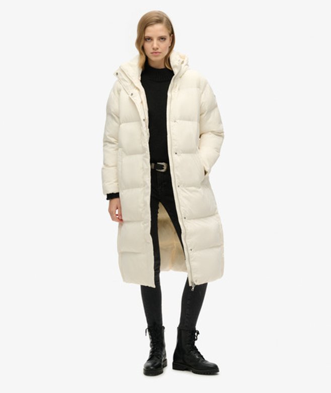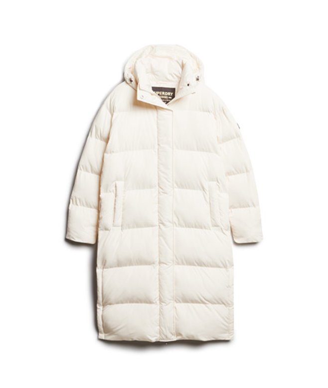 Superdry Women's Hooded Long Puffer Coat White / Off White