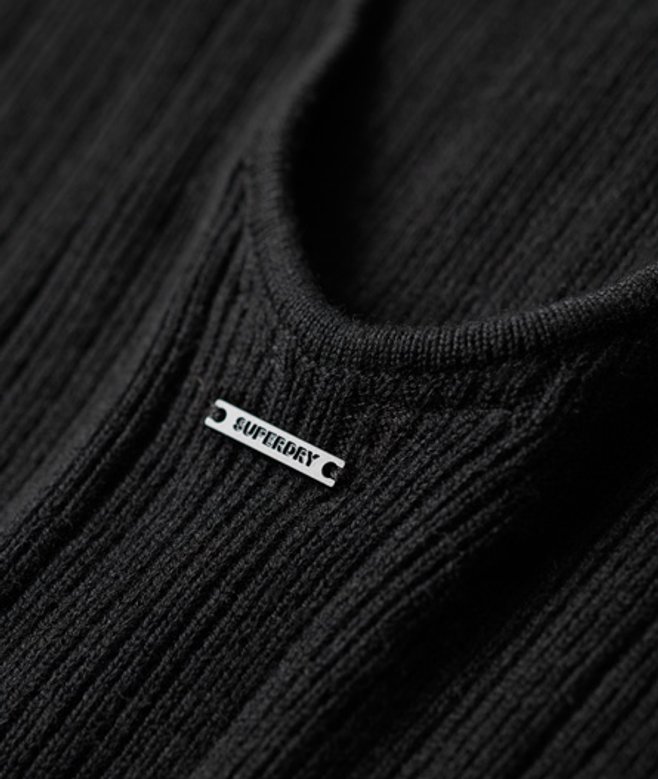 Slim fit - designed to fit closer to the body for a more tailored look Fine knit design Crew neck Long sleeves Open back Superdry metal tab