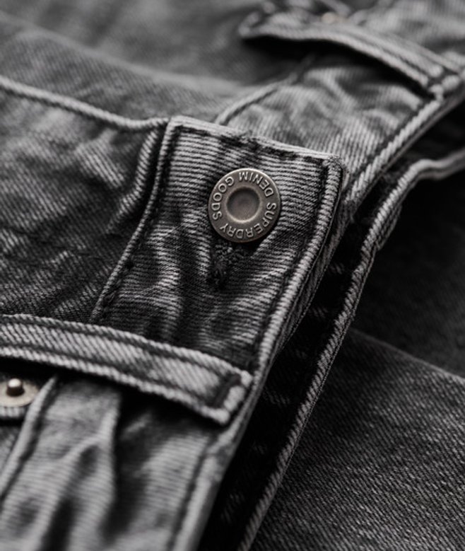 Button and zip fastening Classic five-pocket design Washed effect Superdry patch
