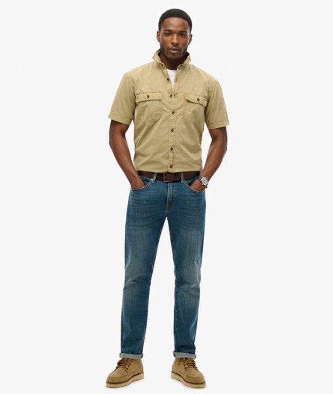 Superdry Mens Classic Military Short Sleeve Shirt, Tan Brown | ricciano UNITED KINGDOM