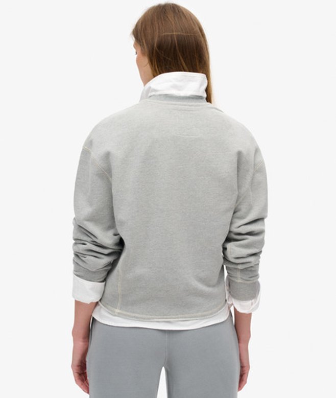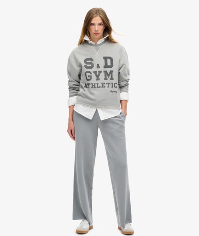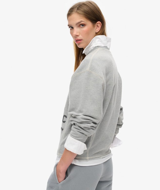 Loose Fit - where comfort meets cool, a stylish loose cut makes this a must-have shape Long sleeve sweatshirt with ribbed cuffs and crew neckline Exposed external stitching and V detail on the neckline Large graphic text on the chest with a small signature embroidered text The ultimate cosy go-to, elevated with external contrast stitching and a lightly brushed lining, our Athletic Loose Crop Crew Sweatshirt is the perfect addition to your lounging wardrobe, we guarantee you'll stay comfortable and stylish all season long.
