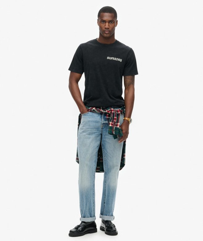 Layer it on with a jacket or show off the graphics with just some jeans for an effortlessly cool fit. Relaxed fit - the classic Superdry fit.