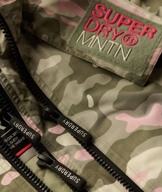 Superdry Women's Hooded Mountain Windbreaker Jacket Green / Seagrass Green Pink Camo