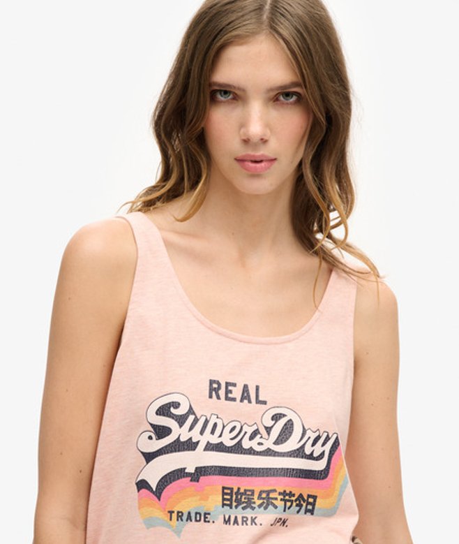 Superdry Ladies Slim Fit Vintage Logo Vest Top, Pink