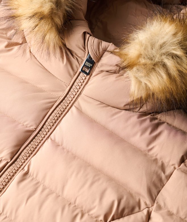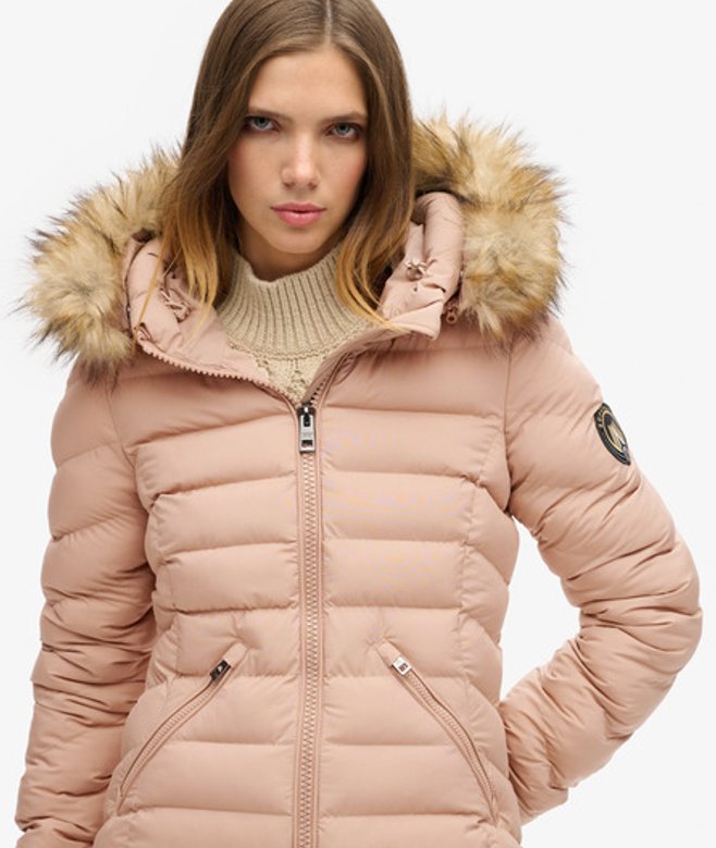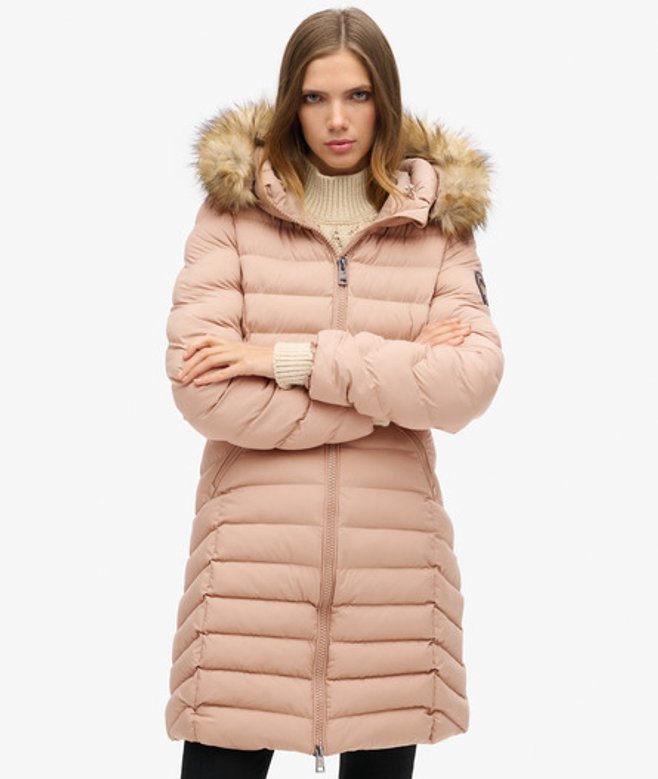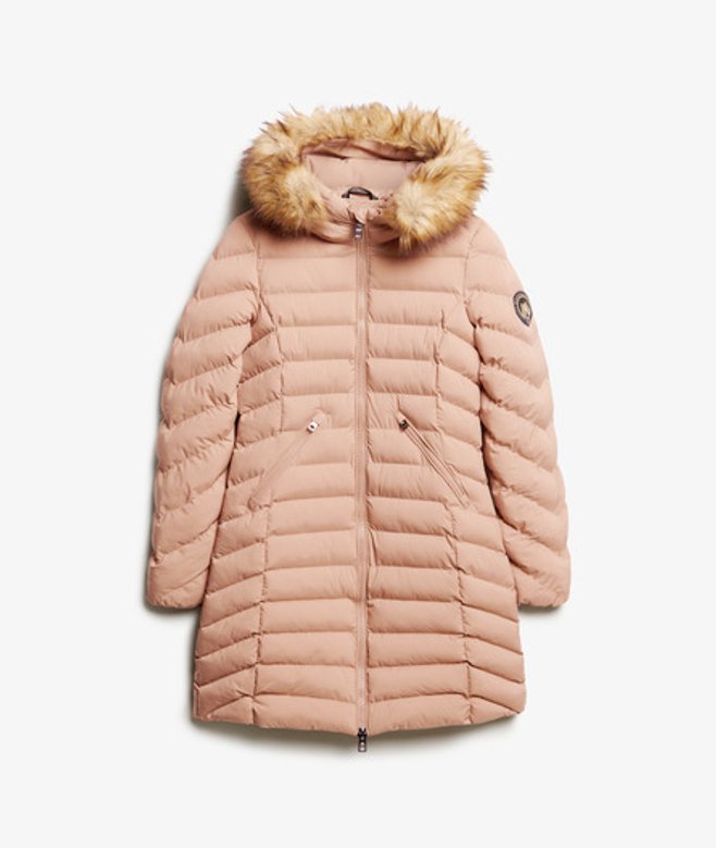 Superdry Women's Slim Fit Fuji Faux Fur Hood Mid Length, Beige | ricciano UNITED KINGDOM