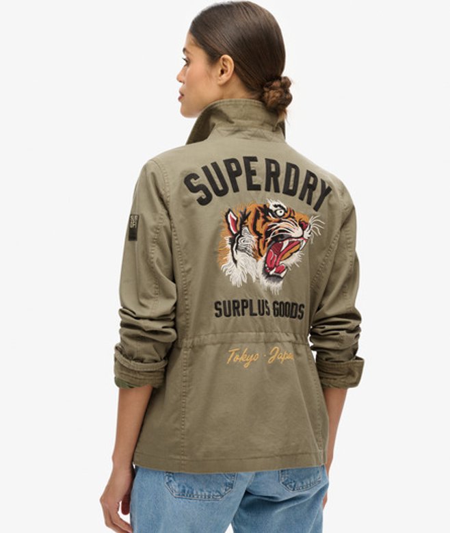 Superdry Women's Embroidered M65 Military Jacket Khaki / Moss Khaki