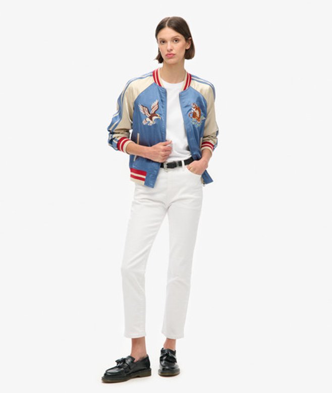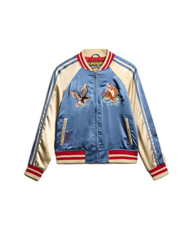 Superdry Women's Colourblock Sukajan Embroidered Bomber Jacket, Blue