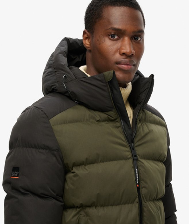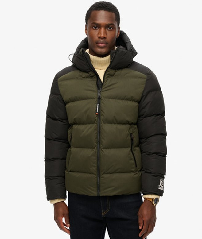 Superdry Men's Hood Colour Block Sport Puffer Black / Black Colourblock