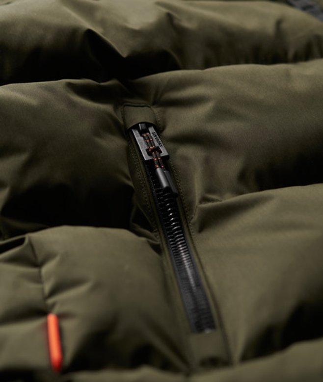 Go for your normal size Padded throughout Hood with adjustable drawstrings Zip through Two external pockets One internal pocket Bungee cord adjustable hemline Long-sleeved with second sleeve and thumb hole Recycled materials Contrast Superdry embroidered text on the sleeve Superdry embroidered tag on the sleeve Superdry embroidered contrast stitching on the back Superdry rubber tag on the side