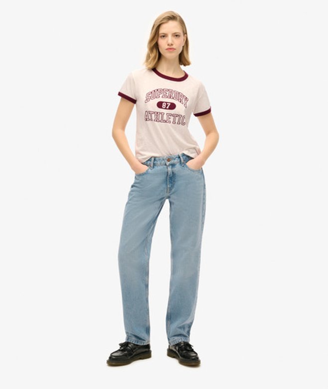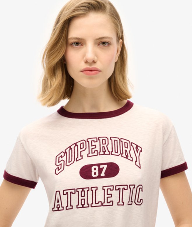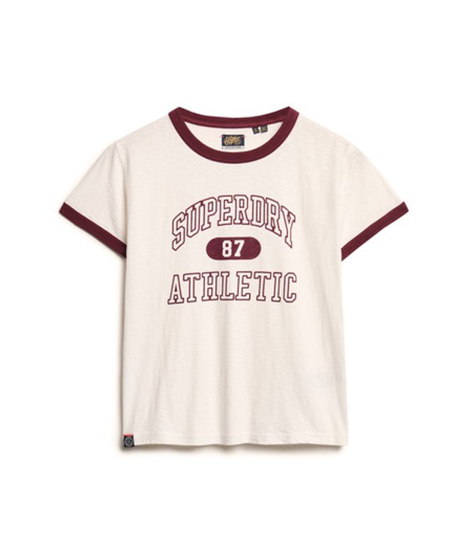 Superdry Women's Athletic Essentials Ringer Fitted Crew Neck T-Shirt, Cream | ricciano UNITED KINGDOM