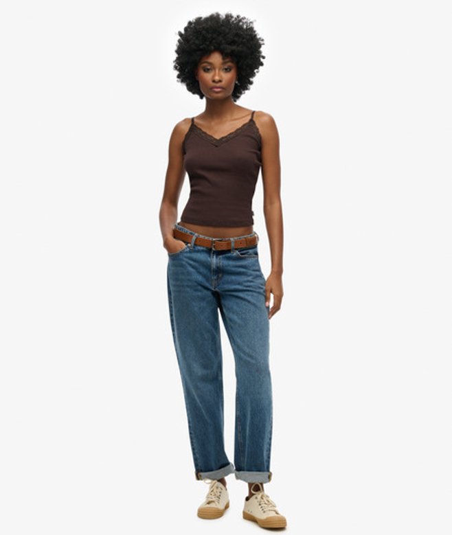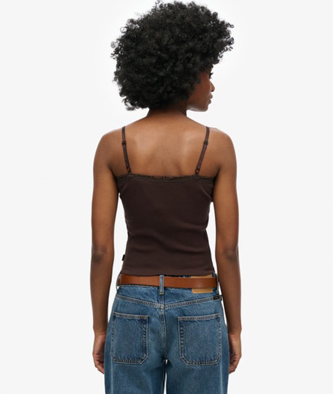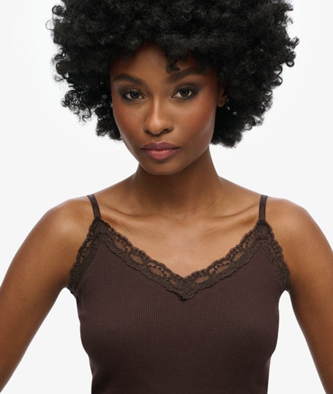 Superdry Women's Organic Cotton Vintage Rib Lace Trim Cami Top Brown / Dark Chocolate Brown | ricciano UNITED KINGDOM