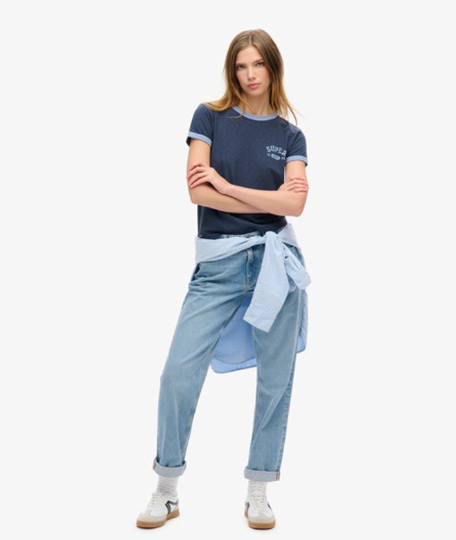 Superdry Women's Athletic Essentials Ringer Fitted T-shirt Navy / Richest Navy Slub