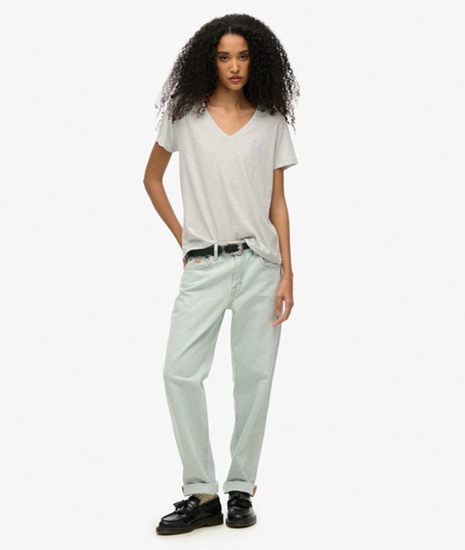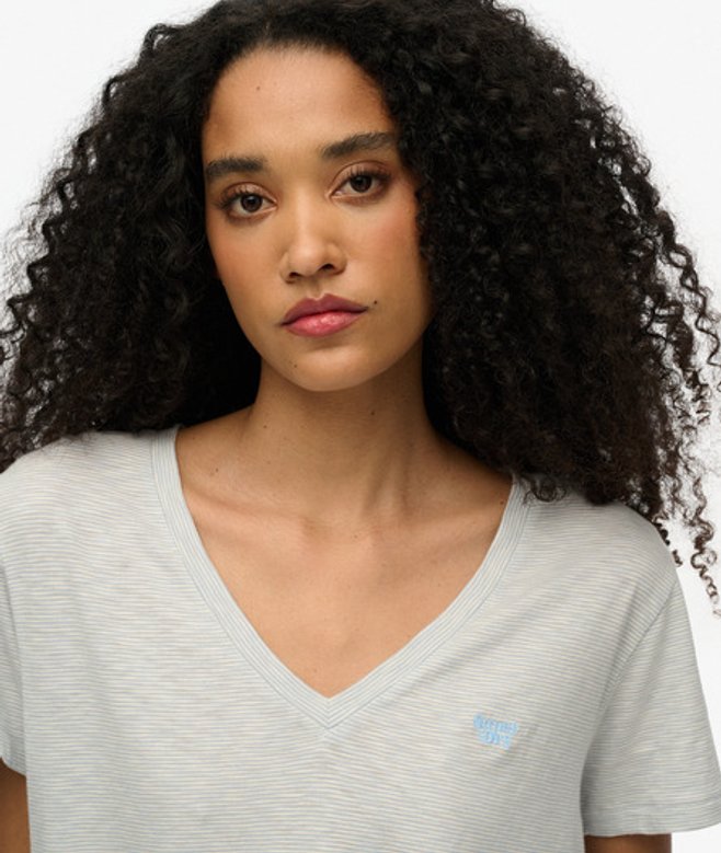 Superdry Women's Slub Embroidered V-neck T-shirt Light Blue / Ashley Blue/optic Stripe | ricciano UNITED KINGDOM