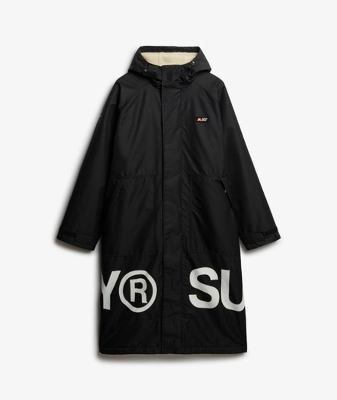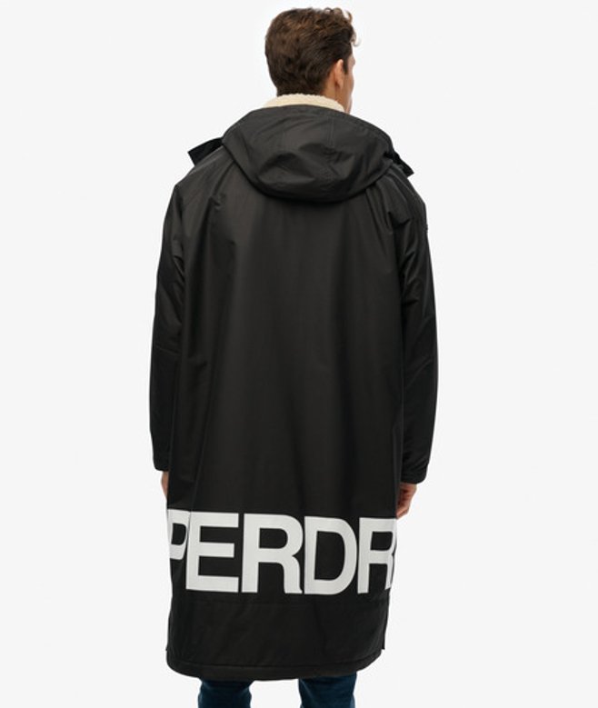 Boxy fit - looser and more flowing, for those times when you need room to move One Size - Chest 75.5cm, length 118.8cm Hooded with bungee adjustable drawcord and zip fastening Hook and loop cuffs with two external and one internal pocket with zip fastening Internal borg lining with contrasting text on the hemline Signature patches on the sleeve and chest The ideal outdoor companion is here, our Superdry Robe has been equipped with all of the essentials; from a bungee adjustable hood to a sumptuous borg-lined interior, you can stay warm and dry without compromising on your authentic style.