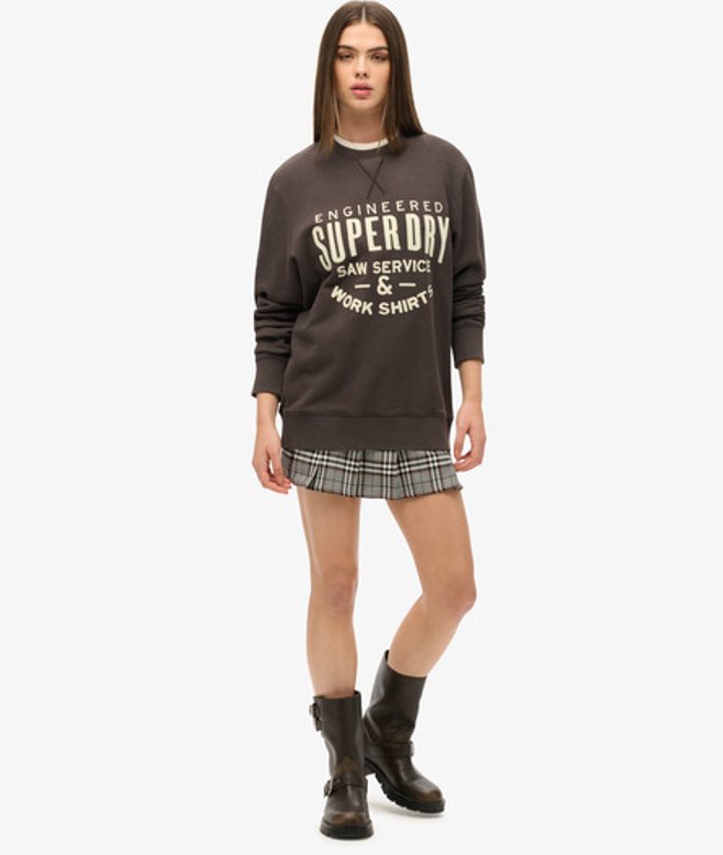 Superdry Women's Cotton Logo Print Oversized Workwear Applique Sweatshirt, Black