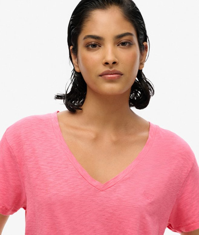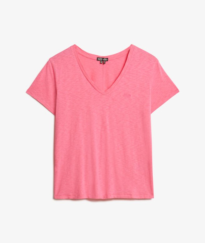 Superdry Women's Slub Embroidered V-neck T-shirt Pink / Azalea Pink