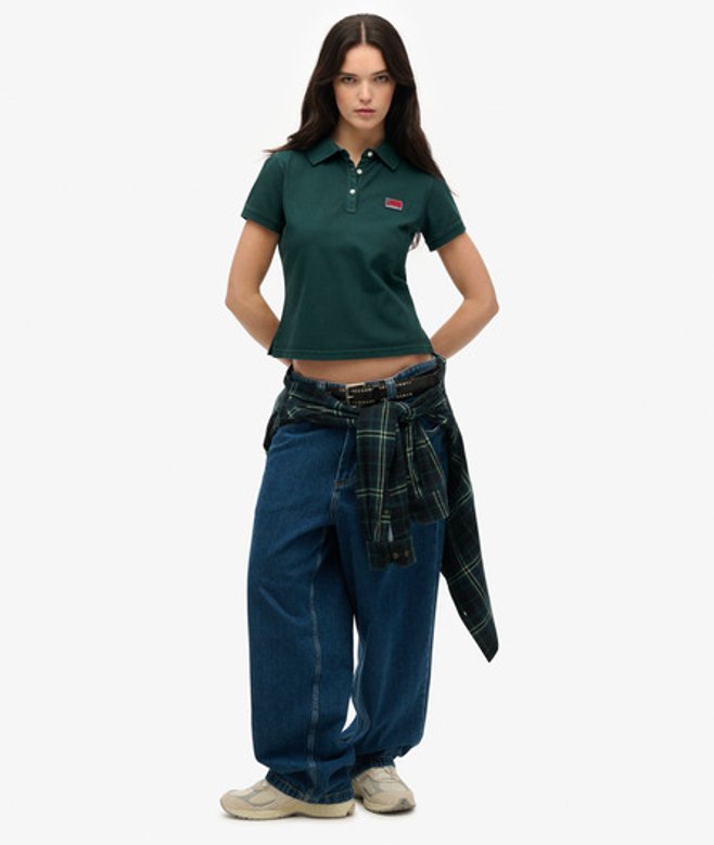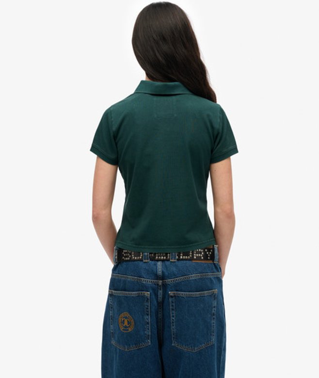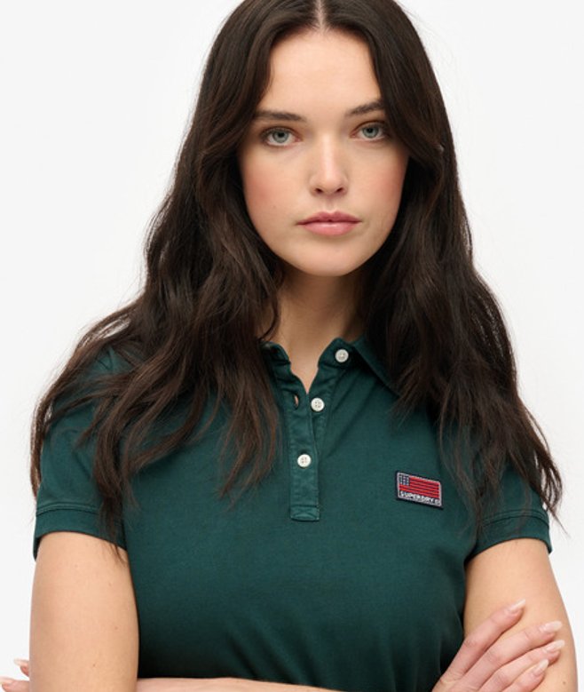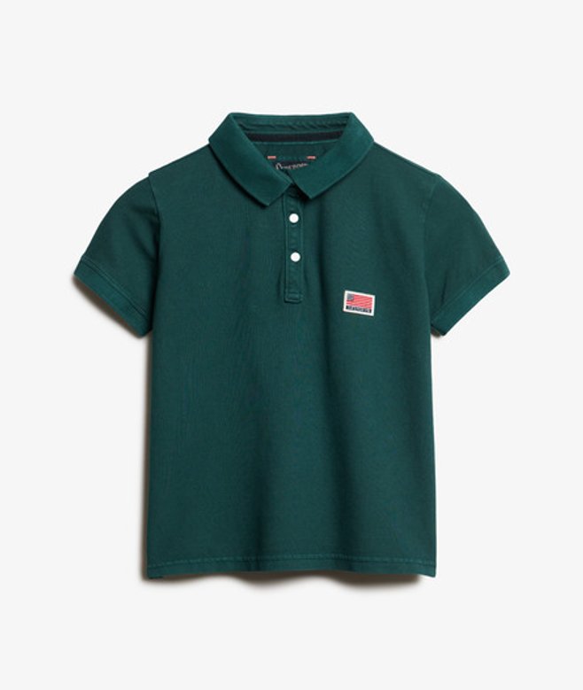 Superdry Women's Athletic Essentials Graphic Polo Shirt Green / Dark Pine Green